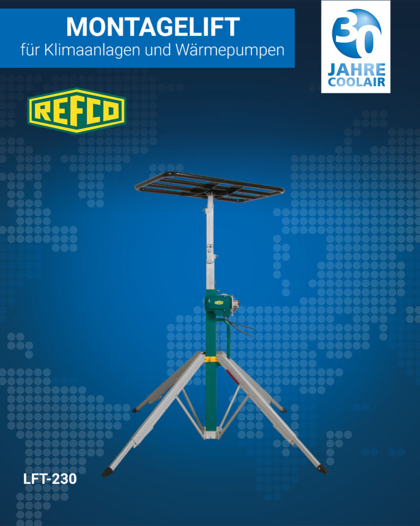 Mit dem REFCO LFT‑230 Montagelift hebst du schwere Lasten sicher und mühelos in die richtige Position – perfekt für Klimaanlagen, Ventilation, Wärmepumpen & mehr! 👷♂️🛠️
