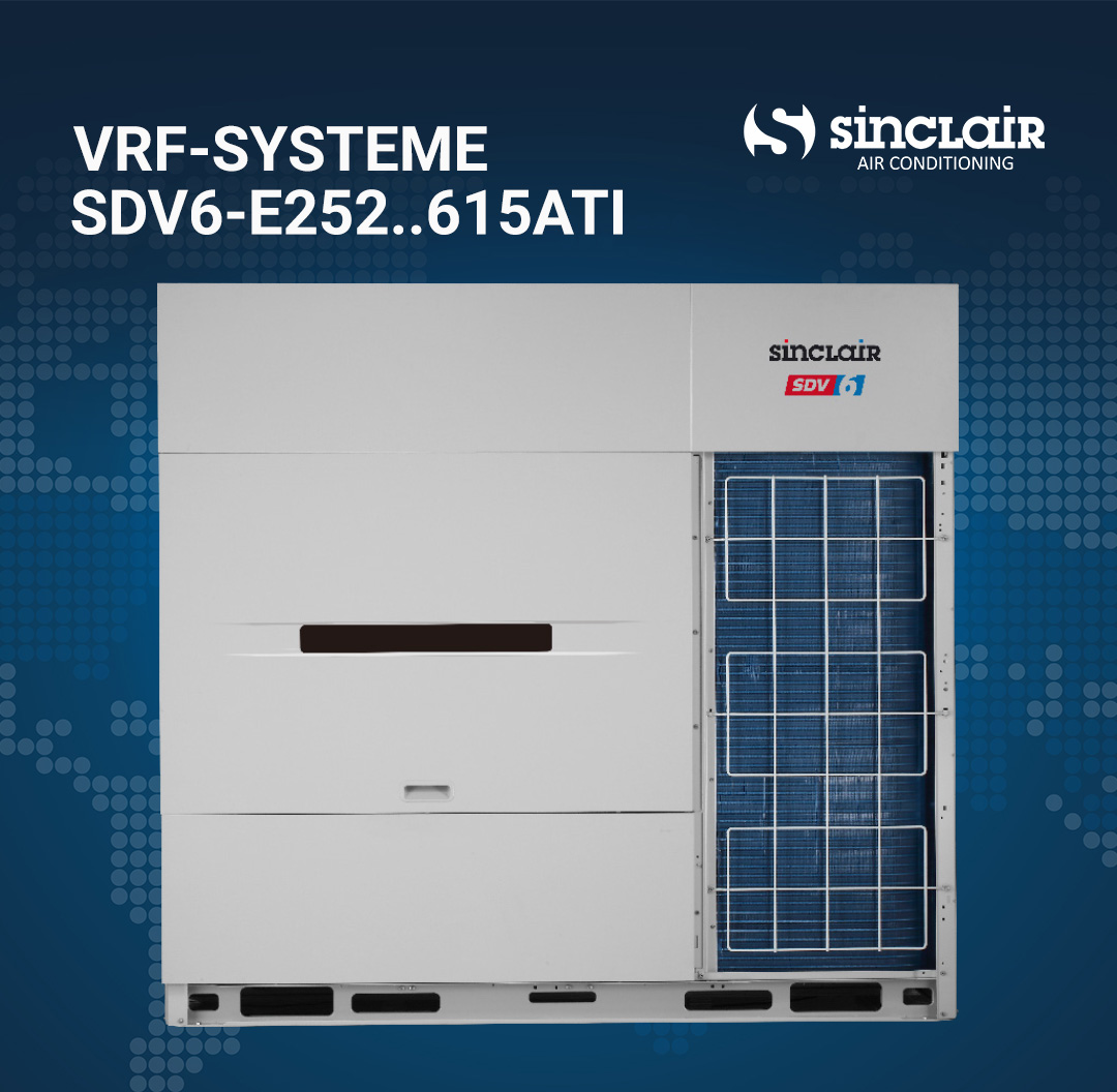 Die VRF-Systeme der SDV6-Serie von SINCLAIR stehen für maximale Effizienz und Flexibilität. Sie ermöglichen eine präzise, bedarfsgerechte Klimatisierung auch komplexer Gebäude.