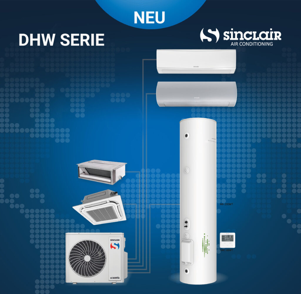 Die neue DHW SERIE ist eine MULTI-SPLIT-ANLAGE mit einem Trinkwasser-Speicher.
