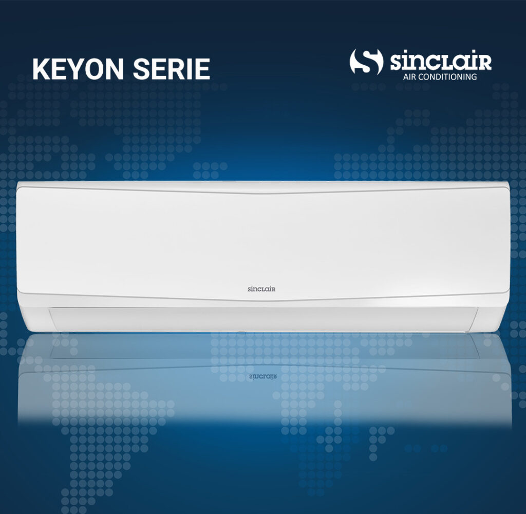 Mit der KEYON SERIE stellt der Hersteller SINCLAIR ein kompaktes Wandgerätemodell im gradlinigen Design vor. Die hinter der Front versteckte Anzeige scheint durch das Gehäuse hindurch und ist auf Wunsch abschaltbar.
